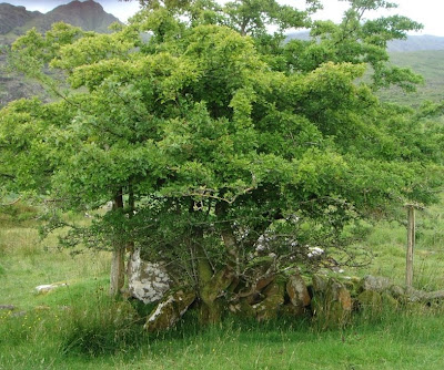 Nicht die Yeats-Buche in Coole Park, aber auch eine stark bearbeitete Buche. Schreib mal wieder ein(e) Buch(e)…Ein märchenhafter Weißdorn-Solitär am Wegesrand…