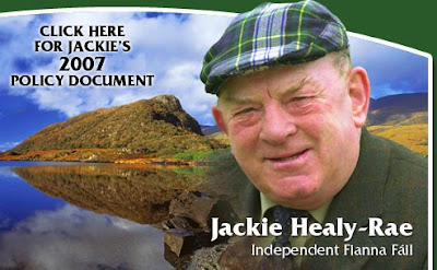 Kilgarvan. Richtig. Das ist Healy Rae Town. Wo immer man in Kilgarvan hinschaut steht Healy Ray drauf: Pub, Tankstelle, Baufirma, Laster und andere Großfahrzeuge. Jackie Healy Rae ist das Fossil im irischen Parlament „Dail“. Er sitzt dort als Ex-Fianna-Fail-Mitgllied und firmiert als Unabhängiger. Seine „Unabhängigkeit“ lässt er sich seit vielen Jahren teuer bezahlen. Mit der noch immer amtierenden Regierung hat er sich darauf verständigt, dass er ihr für zwölf Millionen Euro seine Stimme „leiht“ und für sie stimmt. Mehr denn je ist die auf der Kippe stehende Fianna Fail-Regierung nun auf diese Leihstimme angewiesen.