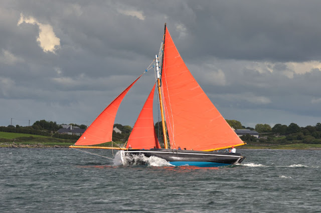 | Die Galway Hooker – schwarze Handelsboote mit roten Segeln. |