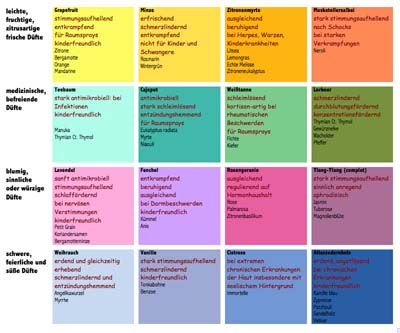Da ich eher von der ausführlichen und komplizierten Ecke komme, nach fast einem Vierteljahrhundert der Anwendung der Aromatherapie, konnte ich natürlich auf reichlich Erfahrungen und auf noch mehr bewährte Rezepturen zurück blicken. Ob mein Abstand zu absoluten Anfängerinnen ausreichend beim Schreiben war, weiß ich allerdings nicht. Ich bin gespannt, wie das Feedback ausfallen wird! Jedenfalls enthält das Buch Etiketten mit Namen des Öles, einem Vorschlag zum ‚Ersatzöl‘ und zu den allerwichtigsten Anwendungsmöglichkeiten. Zum Ausschneiden (oder Kopieren und Ausschneiden) und auf das eigene Öle- Fläschchen kleben. Denn oft haben die Leute etliche Fläschchen zu Hause stehen, die dann vergammeln, weil sie vergessen werden und weil sich keiner so recht erinnert, wofür oder wogegen das Öl eingesetzt werden kann. Mit diesen bunten Etiketten sollte das nicht mehr passieren, insbesondere weil die kostbaren Öle teilweise nur ein knappes Jahr halten, manche bis zu drei Jahren, nur wenige darüber! Die sechzehn Öle sind nur kurz und knapp besprochen, alle Rezepturen für und gegen zig Lebenslagen wie ‚Ich komme nicht in die Pötte‘, ‚Angst essen Seele auf‘, ‚Ein träger Darm schlägt Alarm‘, ‚Hab die Nase gestrichen voll‘ und ganz viele mehr, sind mit dieser relativ kleinen Auswahl, die man für maximal 130 Euro (in bester Bio-Qualität) kaufen könnte, zu behandeln. So leben wir als Familie jedenfalls fast arztfrei, was ganz gut ist, da wir keine herkömmliche Krankenversicherung haben. In den über 11 Jahren, die wir nun in Irland leben, haben wir nur weniger hundert Euros für nur circa ein Dutzend Arztbesuche ausgegeben (für vier Personen).