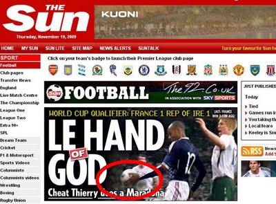 Das doppelte Handspiel von Thierry „The Hand“ Henry, das den blendend aufspielenden Fußballern Irlands den Weg zur Weltmeisterschaft in Südafrika ungerechterweise verbaut hat, ist heute Welt-Thema Nummer ein. Selbst Leute, die sich normalerweise nicht für Fußball interessieren, schimpfen auf die schummelnden Franzosen und die „blinden“ Schiedsrichter. Auf der zur Zeit wenig erfolgsverwöhnten Insel sorgt das Ausscheiden der Boys in Green gar für einen nationalen Furor.