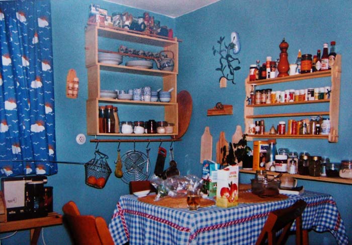 Jenny von Lillehus-Mainz wünscht sich eine kleine Geschichte, in welcher der Name ihrer liebenswerten kleinen Firma vorkommt. Damit kann man an einer Verlosung von wunderschönen Dingen teilnehmen. Ich musste beim Lesen ihres Aufrufes an meine Luxussuite Studentenbude in Mainz denken. Wie gut, dass es damals Jennys schönes Geschäft mit den traumhaften weißen Möbeln und dem bunten Geschirr noch nicht gab! Denn eine schöne Einrichtung war uns, meiner Freundin und Kommilitonin Ullie und mir, sehr wichtig, alles musste jedoch fast kostenneutral sein! So statteten wir unsere Küche vor allem mit Erbstücken meiner Oma, die wenige Wochen vor Studienbeginn verstorben war, und mit selbstgebastelten Regalen aus. Besonders amüsiert hat uns das Regal „Gabriel“ von Ikea, denn der verschrobenste Nachbar der Welt, zwei Etagen unter uns, war der Junggeselle Herr Gabriel. Er zeigte uns, wie er jede Bierflasche, die er aus dem Keller hochholte, liebevoll in der Badewanne abduschte, wie er auf dem Sofa schlief, um das gute Doppelbett im abgeschlossenen Schlafzimmer zu schonen und wie er jeden Tag sein Spiegelbild blitzblank polierte. Wenn ich mir das verblichene Foto von 1979 so anschaue, bin ich erstaunt, dass ich immer noch einige dieser Dinge besitze. Vor allem die Gardinen! Ich hatte sie so ausgesucht, dass sie einst für ein Kinderzimmer weiter verwendet werden könnten. Was dann freilich nicht geschah, ich hatte sie mir nach viereinhalb Jahren richtig gründlich übergesehen! Diese Mainzer Küche hat viele Saisons mit Federweißem (junger Wein) und Zwiebelkuchen gesehen, eine Party mit dem Motto „Zwanziger Jahre“ fand darin auch statt. Im entsprechenden Aufzug mit Fransenröckchen und Federboas zogen wir anschließend durch das nächtliche Mainz und wurden von der Polizei angehalten, da diese zwar mit karnevalistischen Bräuchen bestens vertraut ist, unser privater Kostümball jedoch im Herbst stattfand! Nach Mainz und zu Jennys Verlosung geht es hier.