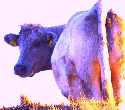 Liebe Heidi, um meine MIlka-Kuh vor einer möglichen Rufschädigung zu bewahren, muss ich feststellen: Bei der abgebildeten Kuh handelt es sich nicht um das rasende Rindvieh von Ennis, sondern um eine ganz und gar unschuldige lila Schokoladenkuh vom Brow Head in Südirland. Dieser Kuh bin ich selber über den Weg gelaufen, ich habe sie fotografiert und im Fotoshop leicht lila eingefärbt. Ihr Verhalten war einwandfrei!